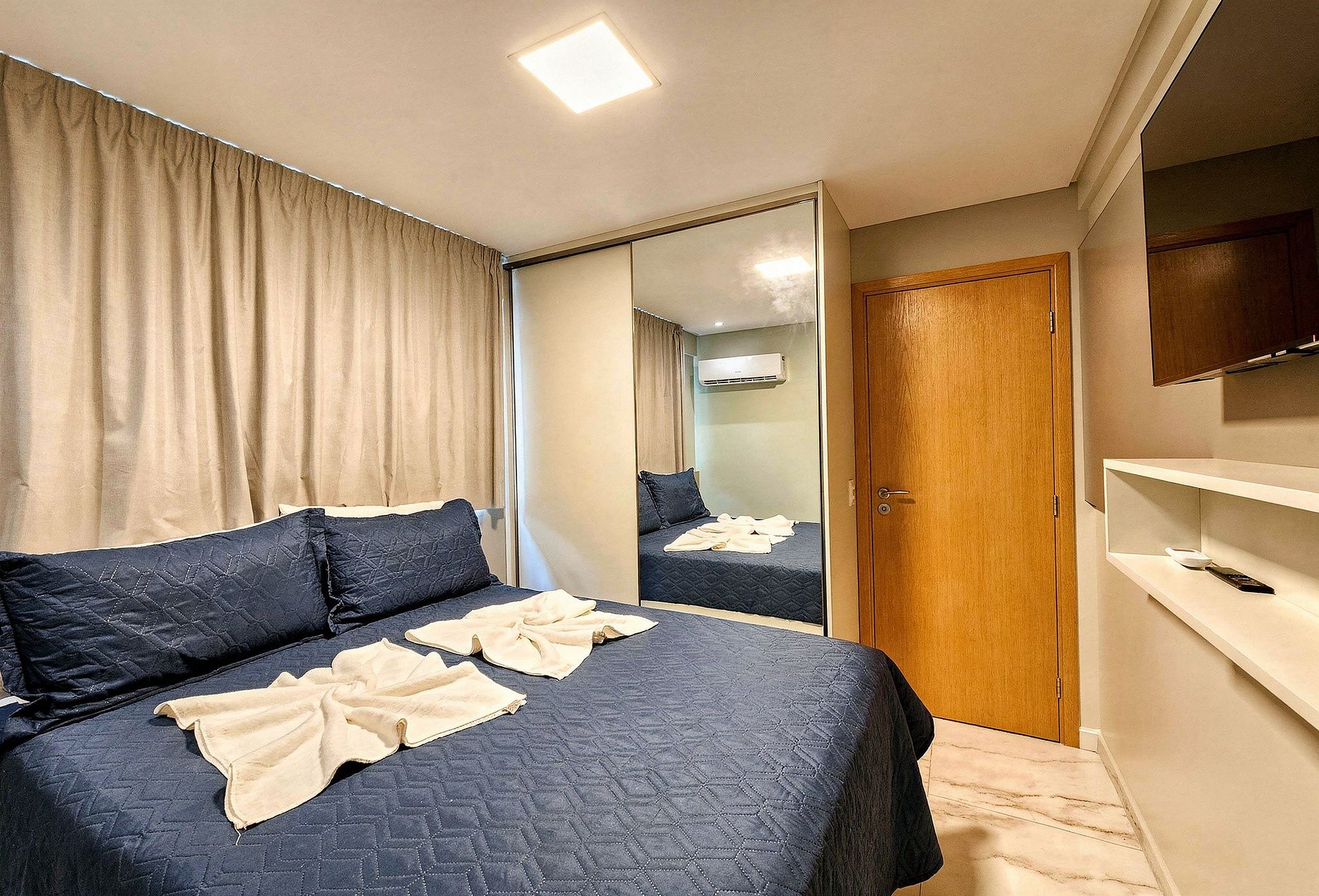 The apartment was fully planned and is divided into a suite with double bed and television, a bedroom with two single beds and a third support bed, living room with sofa bed and television integrated into the dining room with table for 6 places. All of these rooms have air conditioning. The property also has a guest bathroom, which can be isolated from the bedroom, a balcony with a gas barbecue and a fully equipped kitchen. The flat is in a high-end condominium, which has a rooftop with swimming pool, sauna and air-conditioned party area, a swimming pool on the ground floor with barbecue and parking space for one car. We provide all the necessary items to make guests feel at home, without the need to bring their own bed linen or towels. The apartment inspires compliments from all the guests we have received.