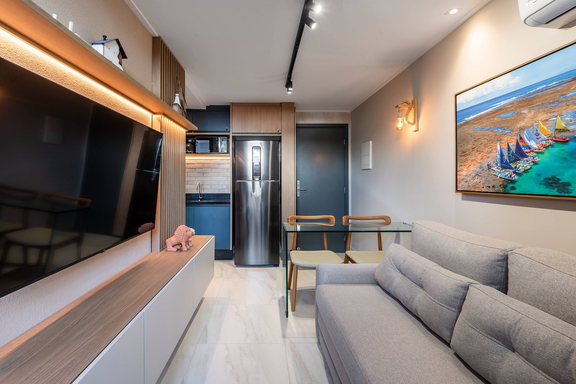 Brand new flat with a modern architectural design and cozy decor, fully furnished and meticulously planned to provide our guests with a unique experience. Located by the beach at Porto de Galinhas, with an exclusive pedestrian-only access directly to the sand. It is close to the famous Porto center, Rua das Sombrinhas, Natural Pools, bars, restaurants, supermarkets, pharmacies, bakeries, and shops. Ideal for enjoying Porto without needing a car. Perfect for couples and small families, comfortably accommodating up to 4 people. The flat has Wi-Fi, a deck, and a private pool on the balcony, accompanied by a table with a built-in champagne bucket and 4 chairs for guests to enjoy moments of comfort and relaxation while cooling off in their own pool. Functional, the space features a fully equipped kitchen with various utensils and appliances for meal preparation, including: # Microwave, # Two-burner cooktop, # 390L Frost Free Refrigerator, # Electric coffee maker, # Sandwich maker, # Blender, # Electric oven with air fryer function, # Pots, # Glasses, Cups, and Wine glasses, # Cutlery. We also provide high-quality bed and bath linens. The bedroom is fully equipped with: # Super comfortable double bed, # Air conditioning, # Wardrobe with hangers, # Iron, # Blackout curtains, # Desk for home office, # 43” Smart TV connected to the internet. We provide a portable crib (up to 15 kg) upon prior request. The private bathroom includes hot water, a hairdryer, and a hair straightener. The living room features: # Super comfortable sofa bed (1.75m in length), # 55” Smart TV connected to the internet, # Air conditioning, # Fan, # Blackout curtains, # Table with 2 chairs for meals. We also provide an Alexa for you to listen to your favorite music during your stay. A games kit (dominoes, chess, checkers, uno, cards, and frescobol) for your entertainment. A basic first aid kit for any eventuality.