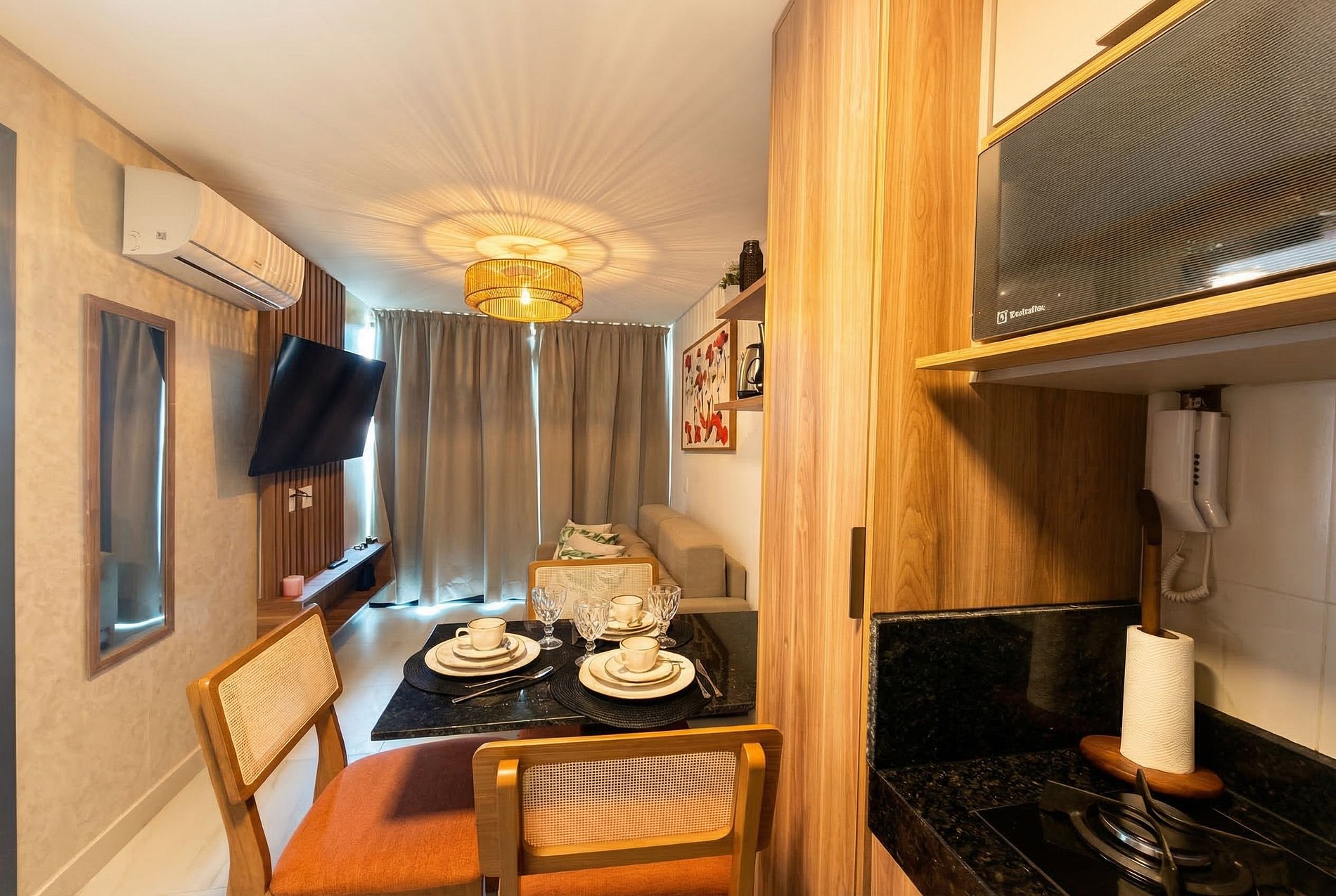 El flat fue diseñado para ofrecer confort, practicidad y una verdadera experiencia frente al mar. Cuenta con balcón y vista al mar, ambientes bien distribuidos, ventilados y luminosos, además de una cocina totalmente equipada para mayor autonomía durante la estadía. El edificio ofrece áreas de ocio con rooftop y piscina panorámica, acceso directo a la playa y portería las 24 horas. Todo pensado para que los huéspedes se sientan seguros, acogidos y relajados, como en casa.