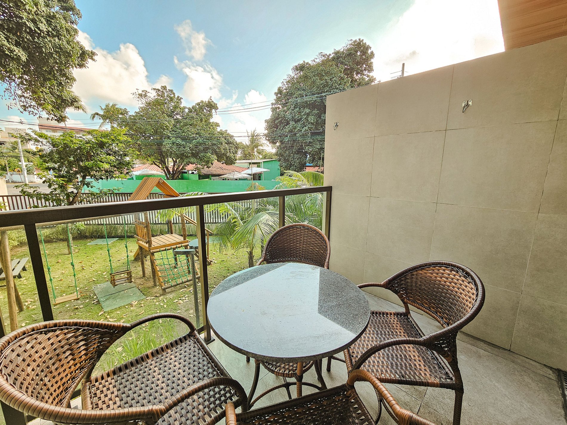 Nuestro departamento fue diseñado con muebles a medida, todos los ambientes están climatizados; cuenta con ducha eléctrica y todos los electrodomésticos necesarios para que tenga la mejor estadía en Porto de Galinhas. El apartamento tiene piscina privada; balcón con vista al parque infantil y la calle, con mesa o hamaca. Hay internet disponible; en la azotea del edificio hay un área de ocio con piscinas, una barbacoa eléctrica y congelador. En la planta baja del edificio hay un área de juegos para niños con columpio y tobogán.