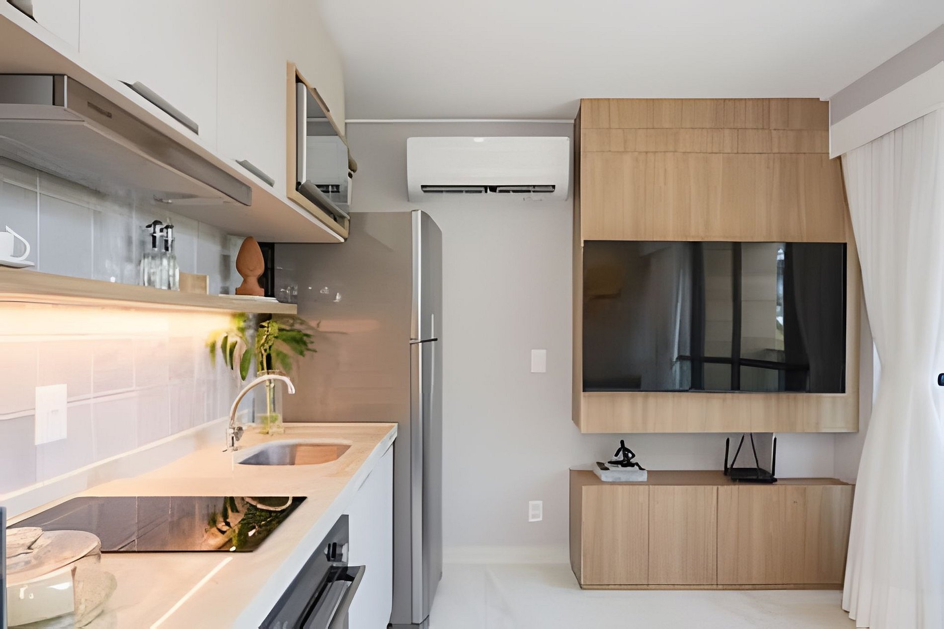 El espacio está equipado con todas las comodidades modernas necesarias para una estadía confortable. Hay aire acondicionado en todos los ambientes para garantizar una temperatura agradable, TV para entretenimiento y una cocina totalmente equipada donde podrá preparar sus propias comidas. La presencia de una hamaca en la parte exterior añade un toque de relajación y descanso.