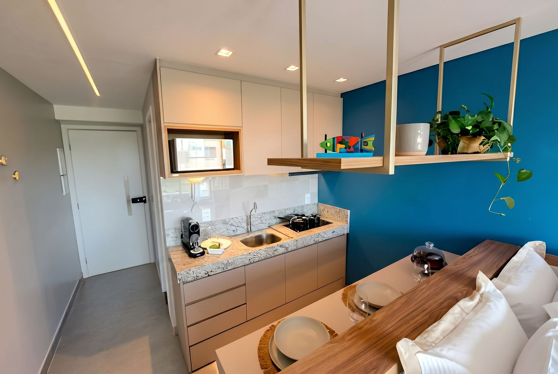 Disfruta de una amplia y espectacular piscina, además de las excelentes áreas de ocio que ofrece este flat, perfecto para momentos de descanso. Con un ambiente moderno y acogedor, el flat cuenta con una cocina totalmente equipada, con todos los utensilios necesarios para una estadía cómoda. Ubicado en una zona tranquila, pero a solo minutos del centro de Porto de Galinhas, es el refugio ideal para quienes buscan practicidad y confort, sin renunciar a la cercanía con las bellezas de la región.