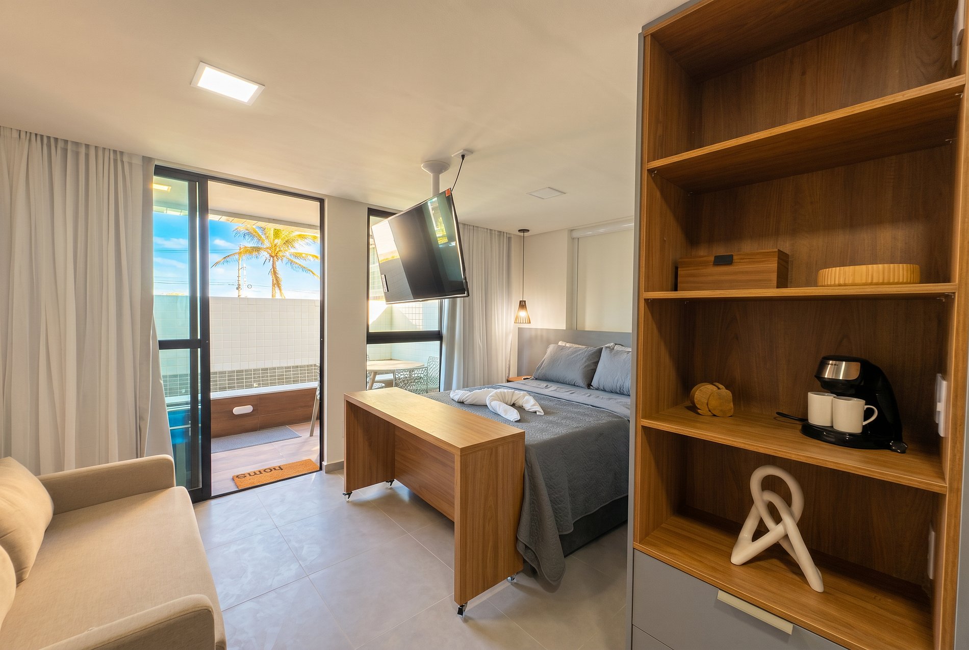 Flat moderno, sofisticado e acolhedor, localizado a poucos passos da praia. O apartamento oferece piscina privativa e um terraço agradável com área gourmet completa, perfeito para momentos especiais. O espaço conta com cama confortável, sofá-cama funcional e cozinha totalmente equipada para sua conveniência. Ideal para relaxar com estilo, aproveitar a brisa do mar e desfrutar de Porto de Galinhas com conforto, praticidade e exclusividade.