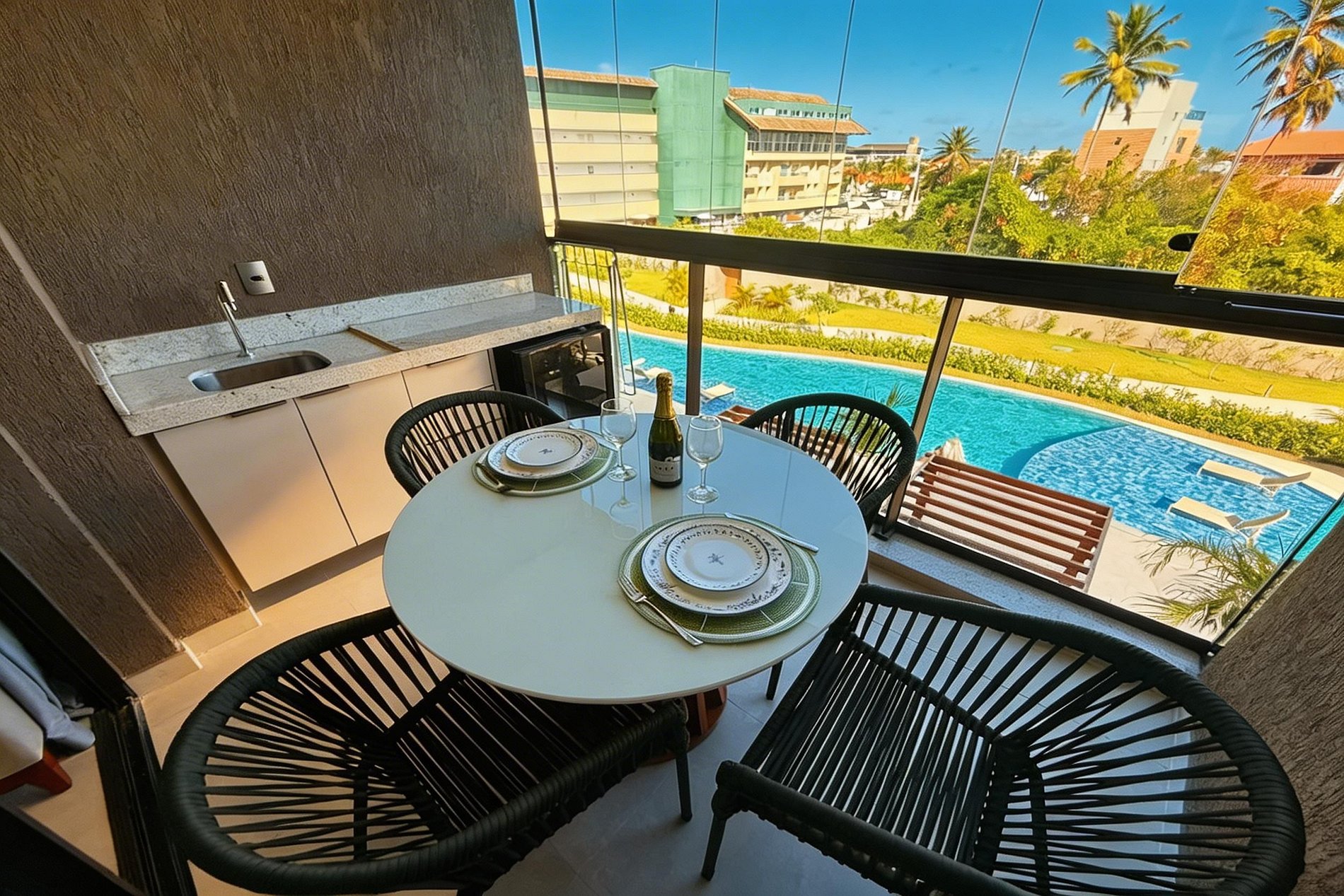 Você chega e sente aquela praticidade boa de quem escolheu certo. Um estúdio moderno, bem distribuído e com clima leve, perfeito para uma viagem a dois no Cupe, com a praia logo ali para guiar o ritmo dos dias.