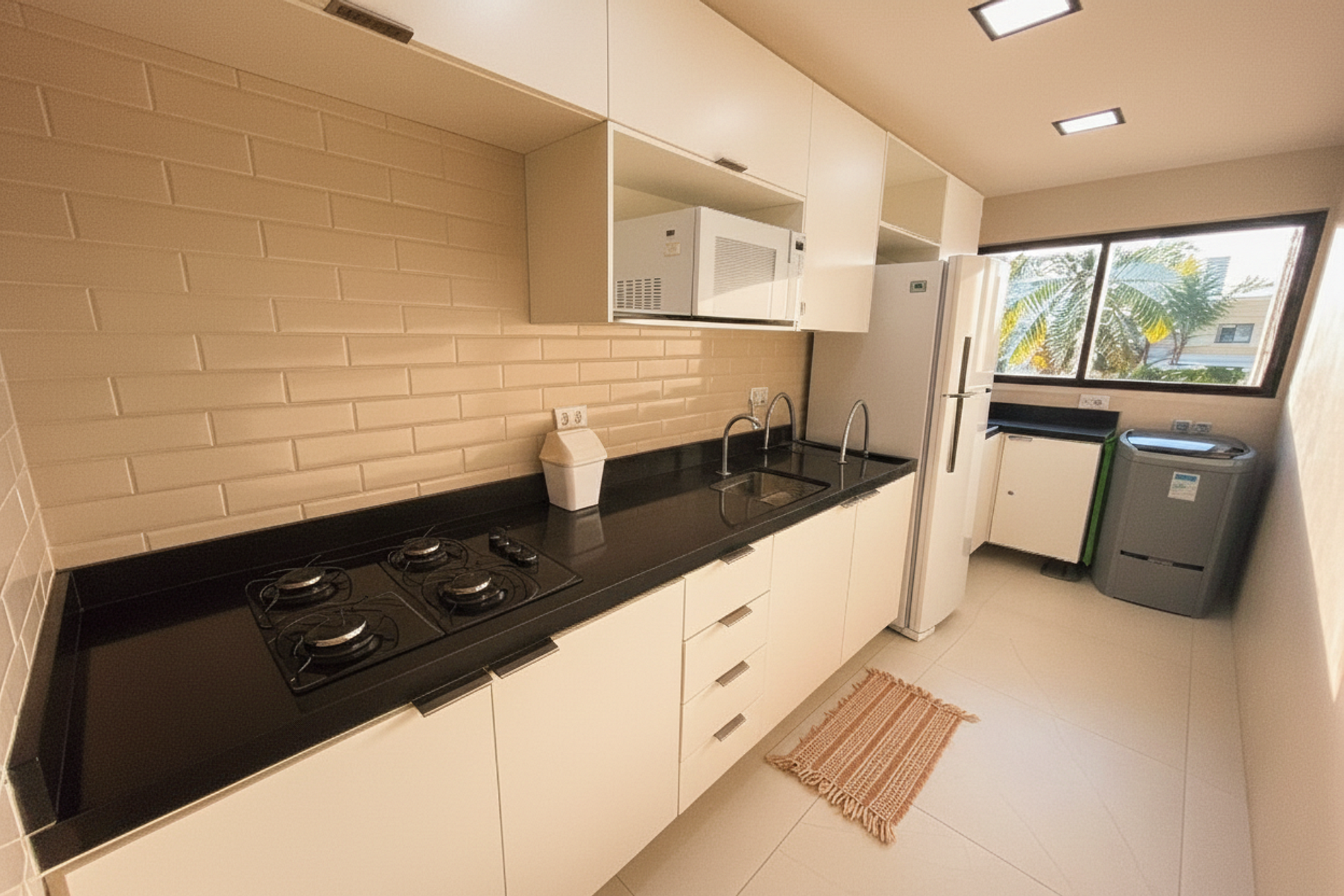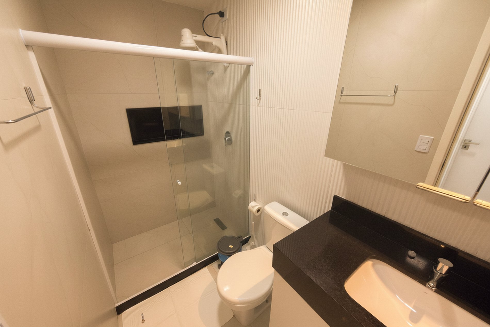 O prédio conta com elevador, garagem privativa e zeladoria, garantindo comodidade e segurança aos hóspedes. Todas as unidades possuem infraestrutura para ar-condicionado, gás encanado e varanda gourmet, proporcionando uma experiência completa tanto para estadias curtas quanto mais longas.
