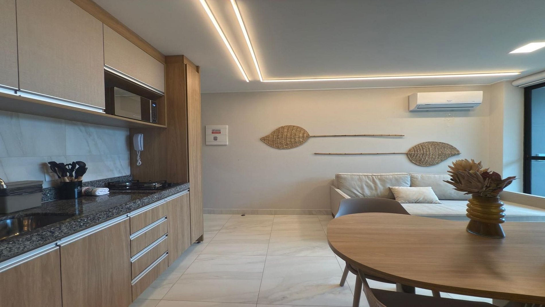 O destaque é a piscina privativa exclusiva, que oferece momentos relaxantes em total intimidade. Equipado com ar condicionado, o flat proporciona um ambiente sempre agradável, independentemente da temperatura externa. A televisão de tela plana está disponível. O design interior é elegante e cuidadosamente decorado, criando uma atmosfera acolhedora e sofisticada. Cada detalhe foi pensado para proporcionar uma estadia memorável, incluindo uma cozinha totalmente equipada com todos os utensílios necessários, ideal para preparar refeições completas e aproveitar o conforto de casa.Além disso, o flat oferece um sofá-cama na sala, proporcionando espaço adicional para acomodação. Os enxovais são completos e de alta qualidade, garantindo conforto durante toda a estadia. Com todos esses recursos, o flat se destaca como uma opção completa e ideal para quem busca uma experiência de hospedagem confortável.